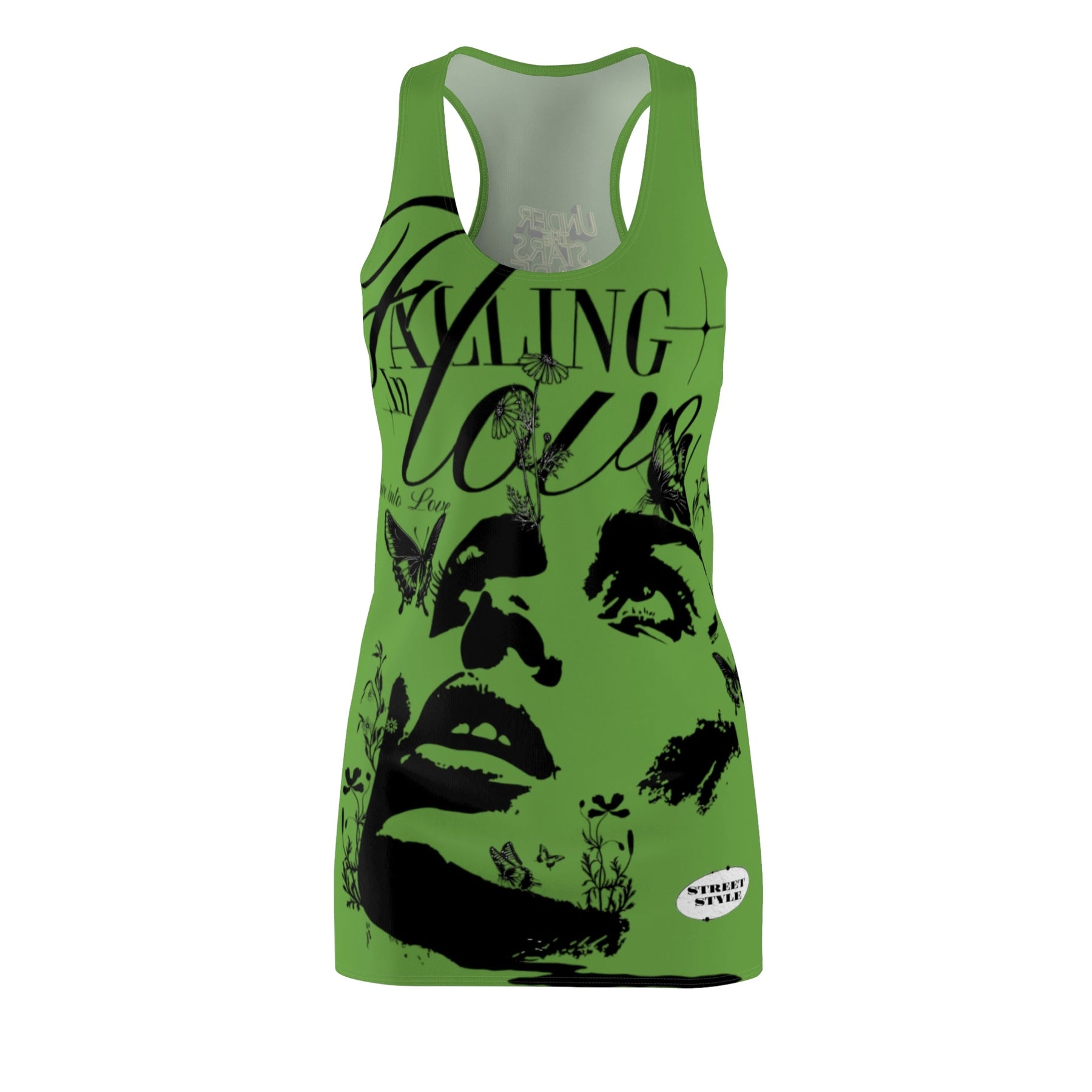 Falling in love racer back dress that exudes a romantic and playful vibe. Perfect for summer outings and date nights, this dress is designed to flatter the female silhouette. Ideal for women looking for a chic and comfortable outfit for special occasions.