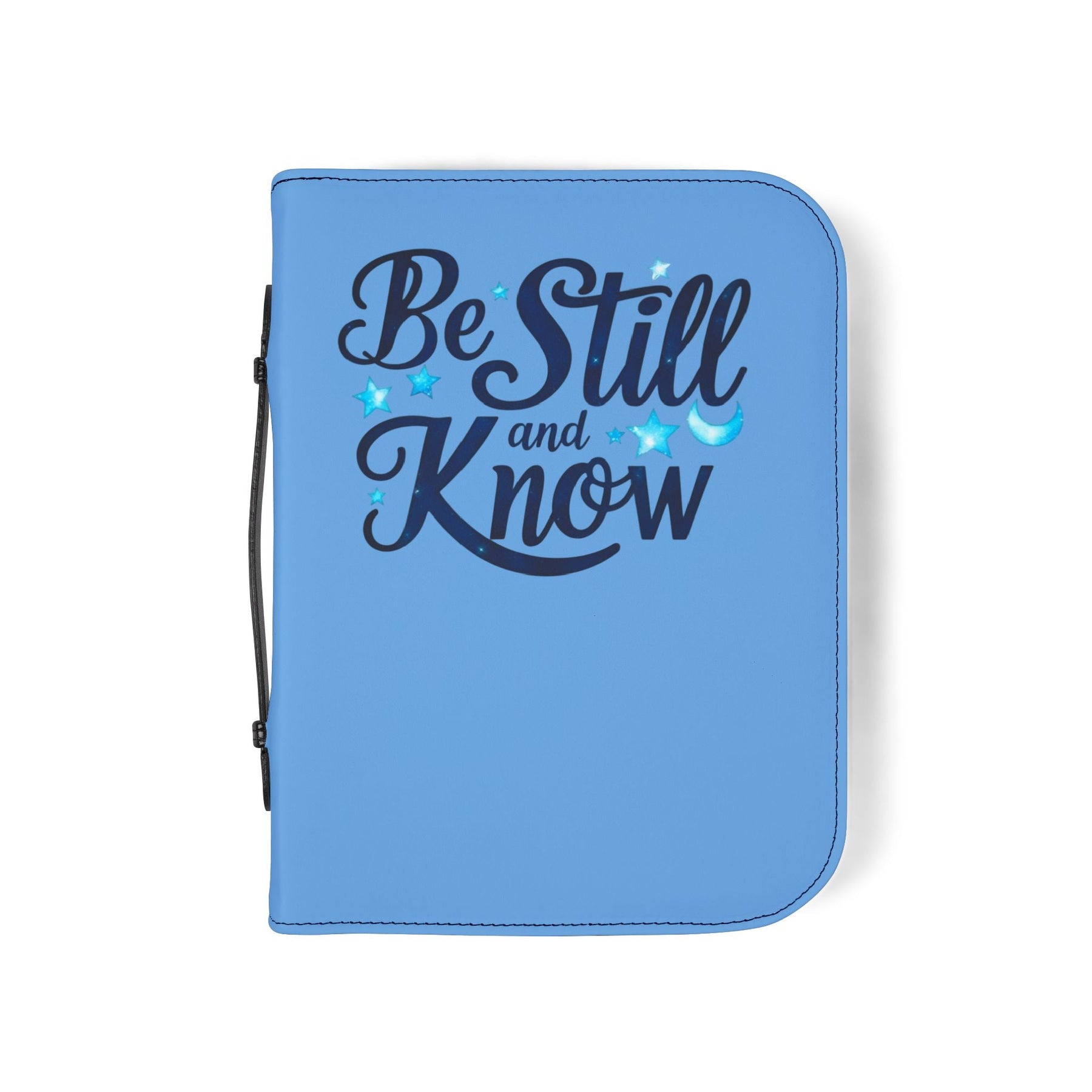 Elegant Bible Cover with the quote 'Be Still and Know'. Perfect for those who want to protect and carry their Bible in style. Relevant for religious holidays, like Easter and Christmas, as well as for everyday use by anyone who enjoys inspirational quotes.