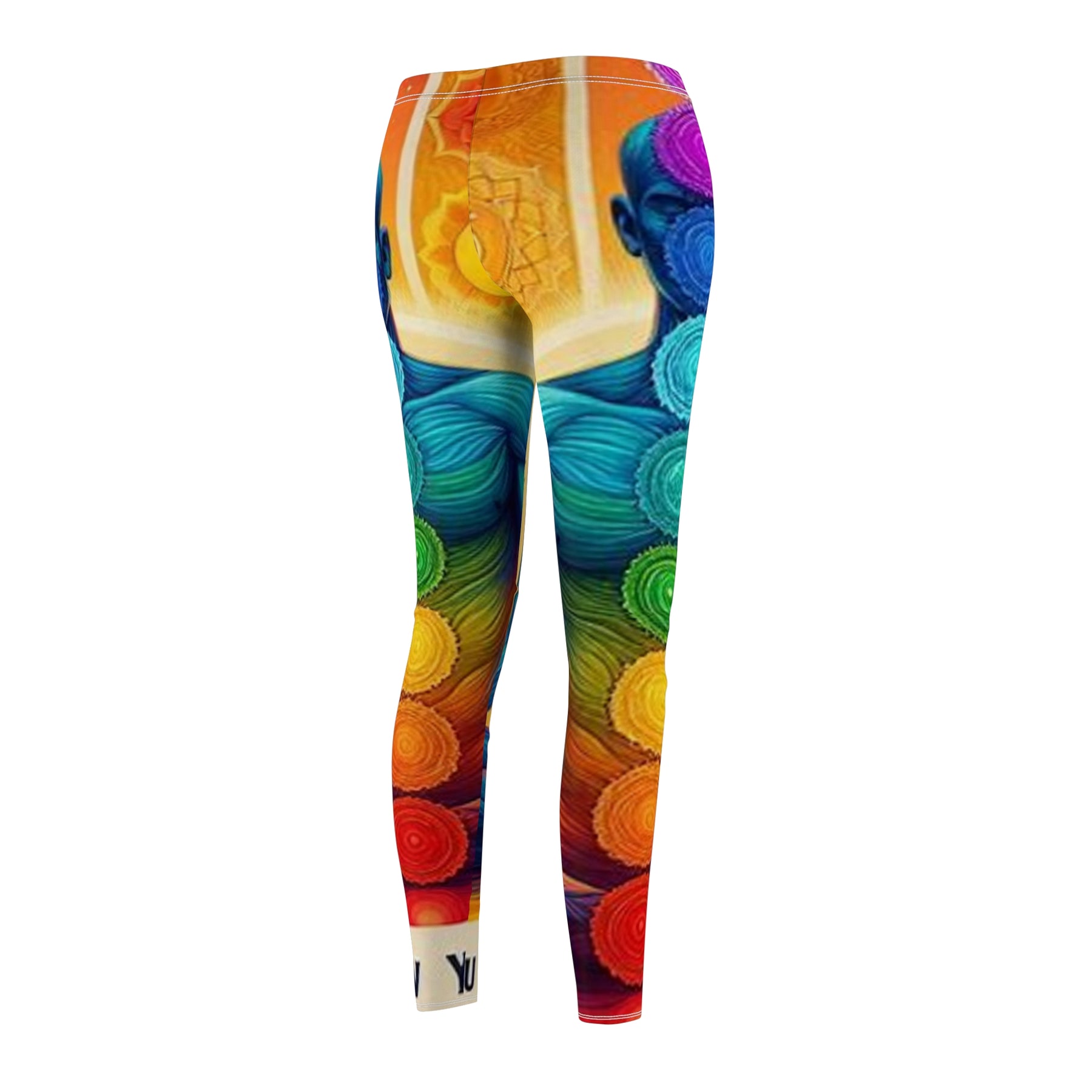 - Roll-to-roll all-over chakra rainbow print — continuous coverage from hip to ankle
