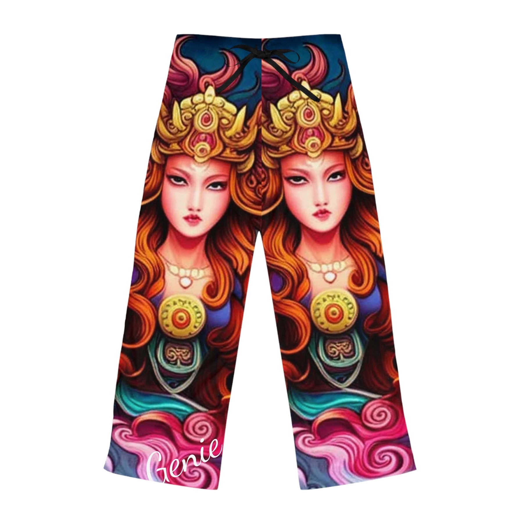 "Make all of your wishes come true with our Genie Women's Pajama Pants! These lounge pants feature a playful Genie design, perfect for adding a touch of magic to your nighttime routine. Enjoy comfort and whimsy with these AOP pajama pants. (No need to rub a lamp for these pajamas!)" Add custom style to any loungewear collection with these custom-printed pajama pants. Their 100% polyester jersey knit fabric, along with the relaxed fit, makes for the ultimate comfort choice while kicking back at home. Meanwhile, the back elastic with the drawstring tie creates the perfect fit while the all-over-print adds a stylish dimension unique to your taste.