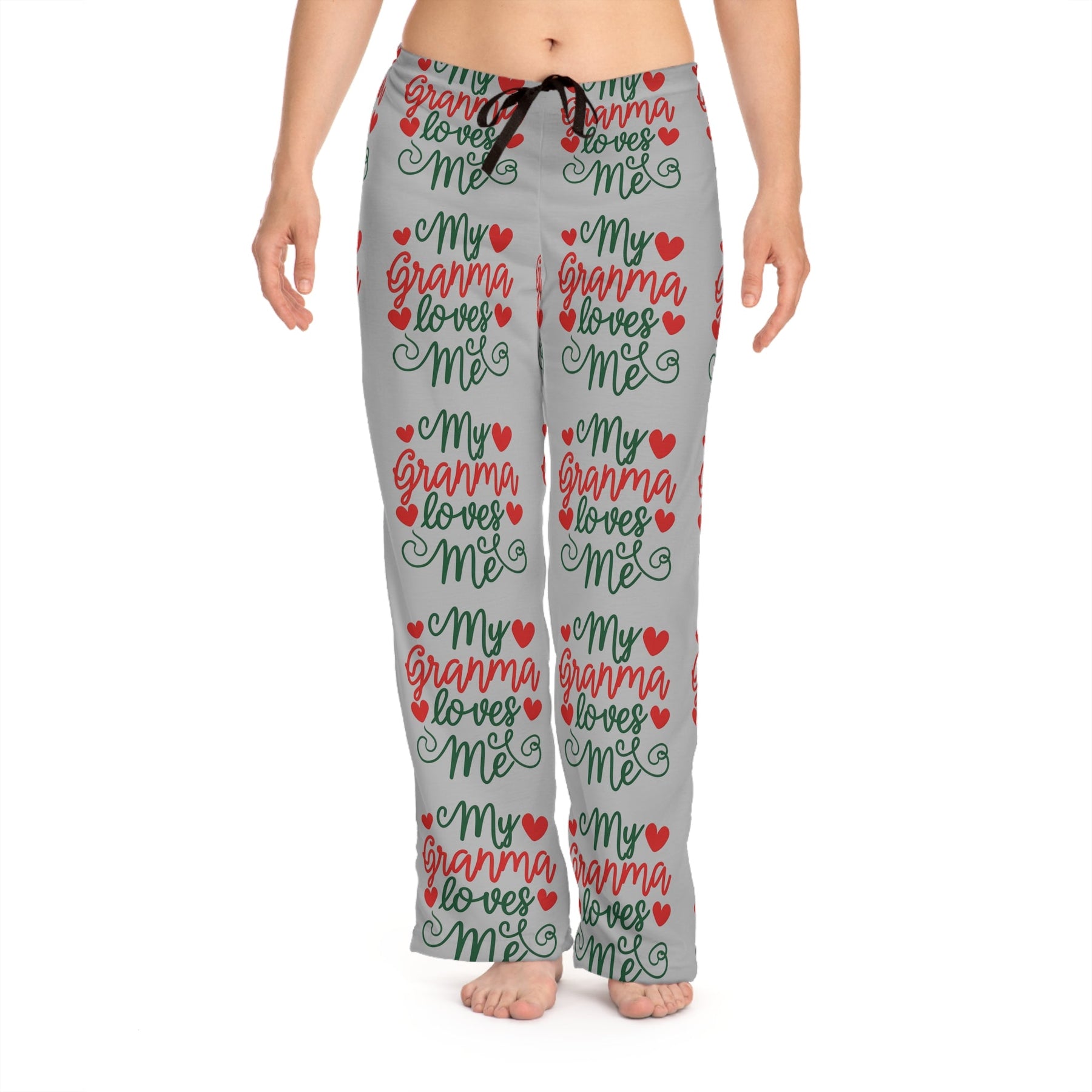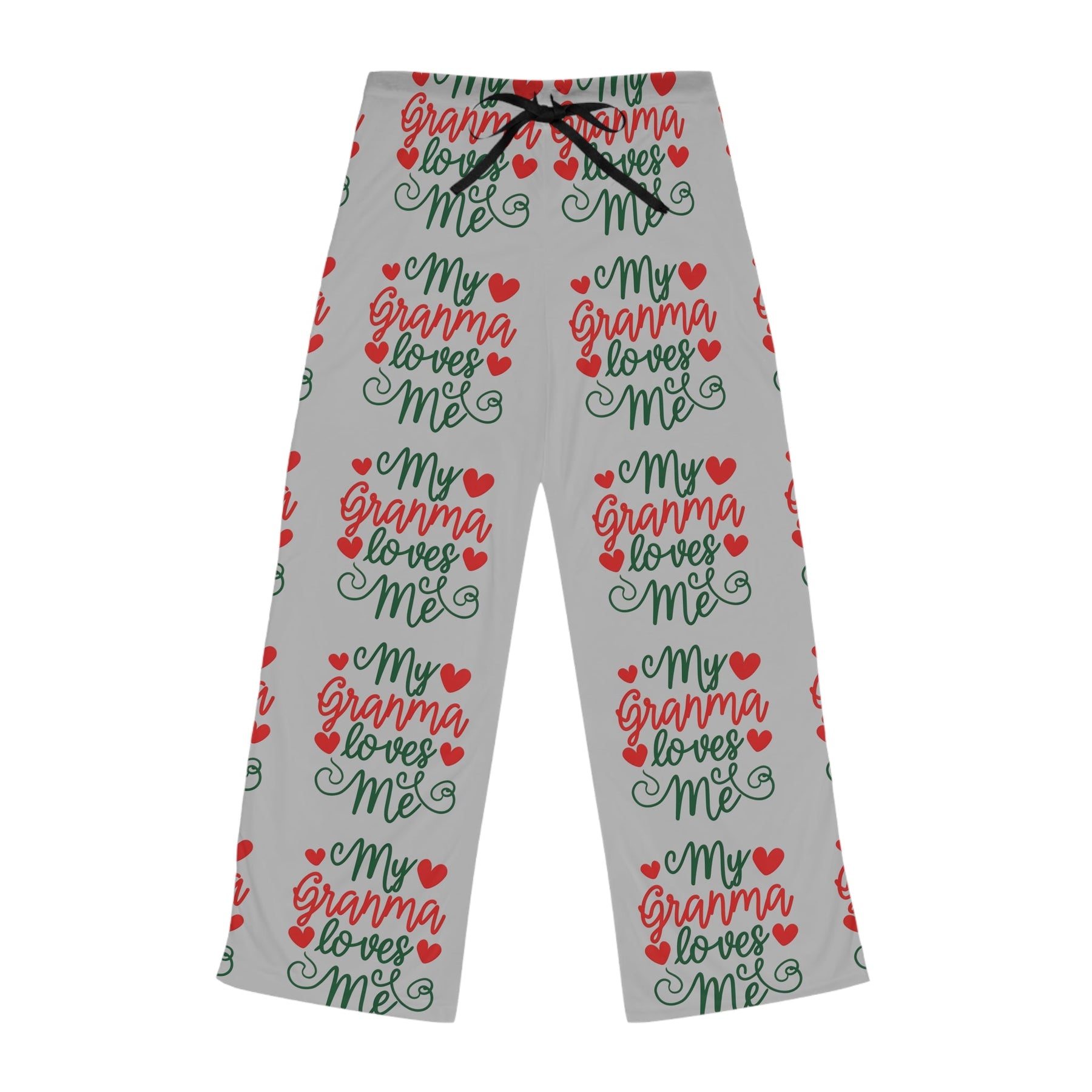 Add custom style to any loungewear collection with these custom-printed my Granma Loves Me design pajama pants. Their 100% polyester jersey knit fabric, along with the relaxed fit, makes for the ultimate comfort choice while kicking back at home. Meanwhile, the back elastic with the drawstring tie creates the perfect fit while the all-over-print adds a stylish dimension unique to your taste.