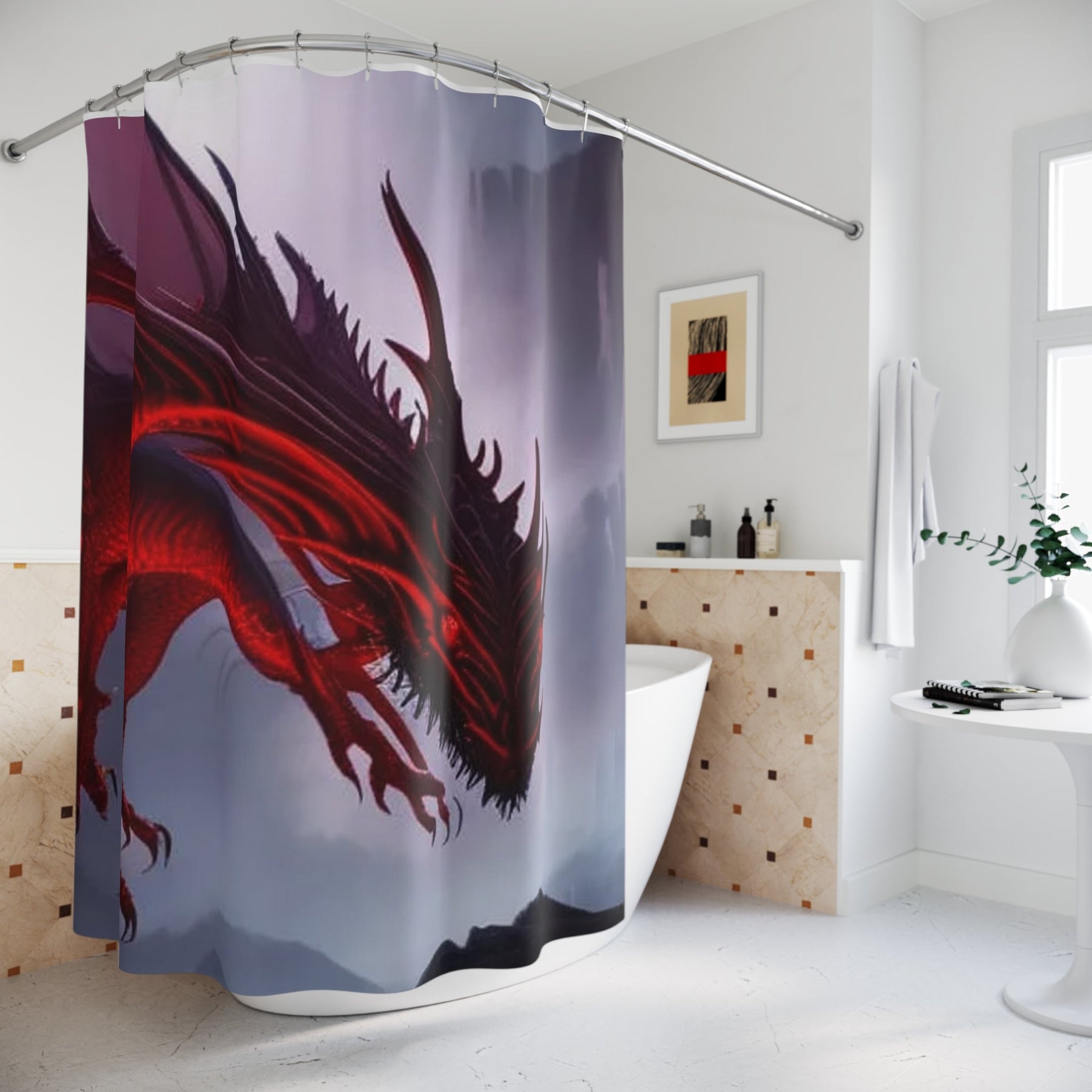 This Red Dragon Shower Curtain brings a mystical and powerful vibe to your bathroom decor. Perfect for fantasy lovers and those who enjoy unique home accents. Ideal for adding a touch of magic to your daily routine. Great for Halloween, cosplay events, or dragon-themed parties.