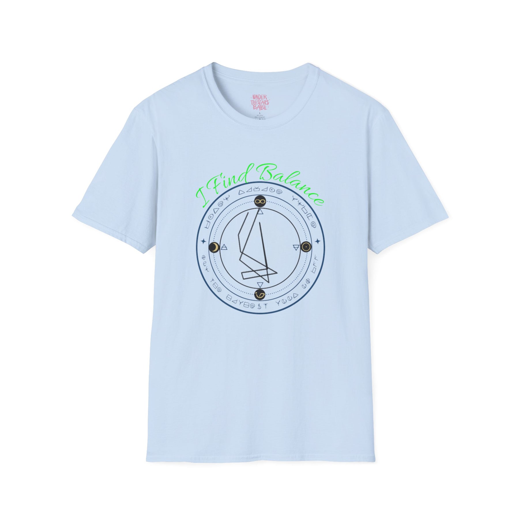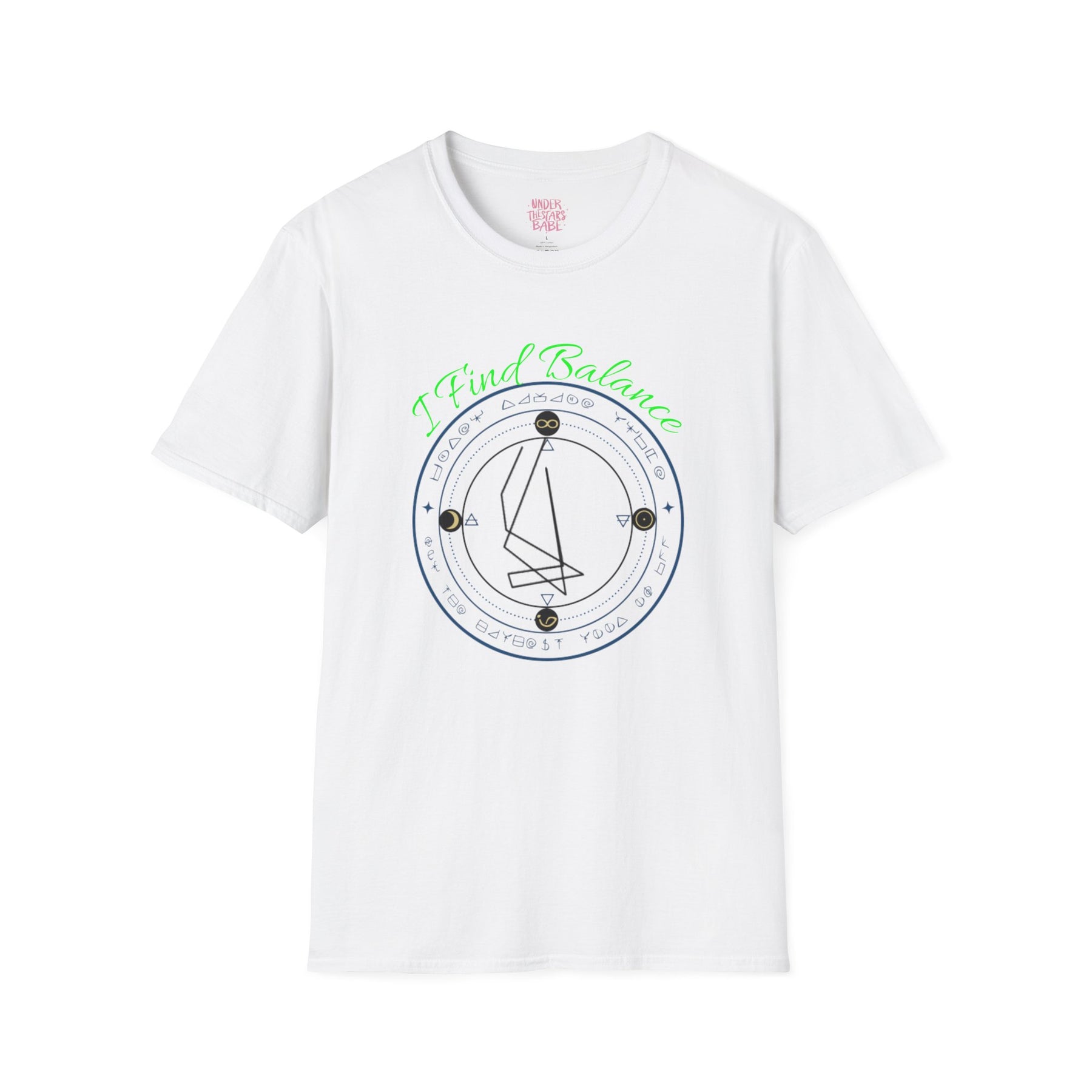 This lightweight crew tee wears like a quiet promise — simple, thoughtful, and a little mysterious. A delicate circular sigil rests on the chest: fine lines form an origami-like sailboat framed by concentric rings and tiny star points. The design feels like a private map for evening walks, late-night conversations, and slow mornings with strong coffee. It drapes cleanly over the body and keeps the focus on the subtle, hand-drawn artwork. Wear it under a jacket or on its own; let the small, symbolic graphic start conversations without shouting.
