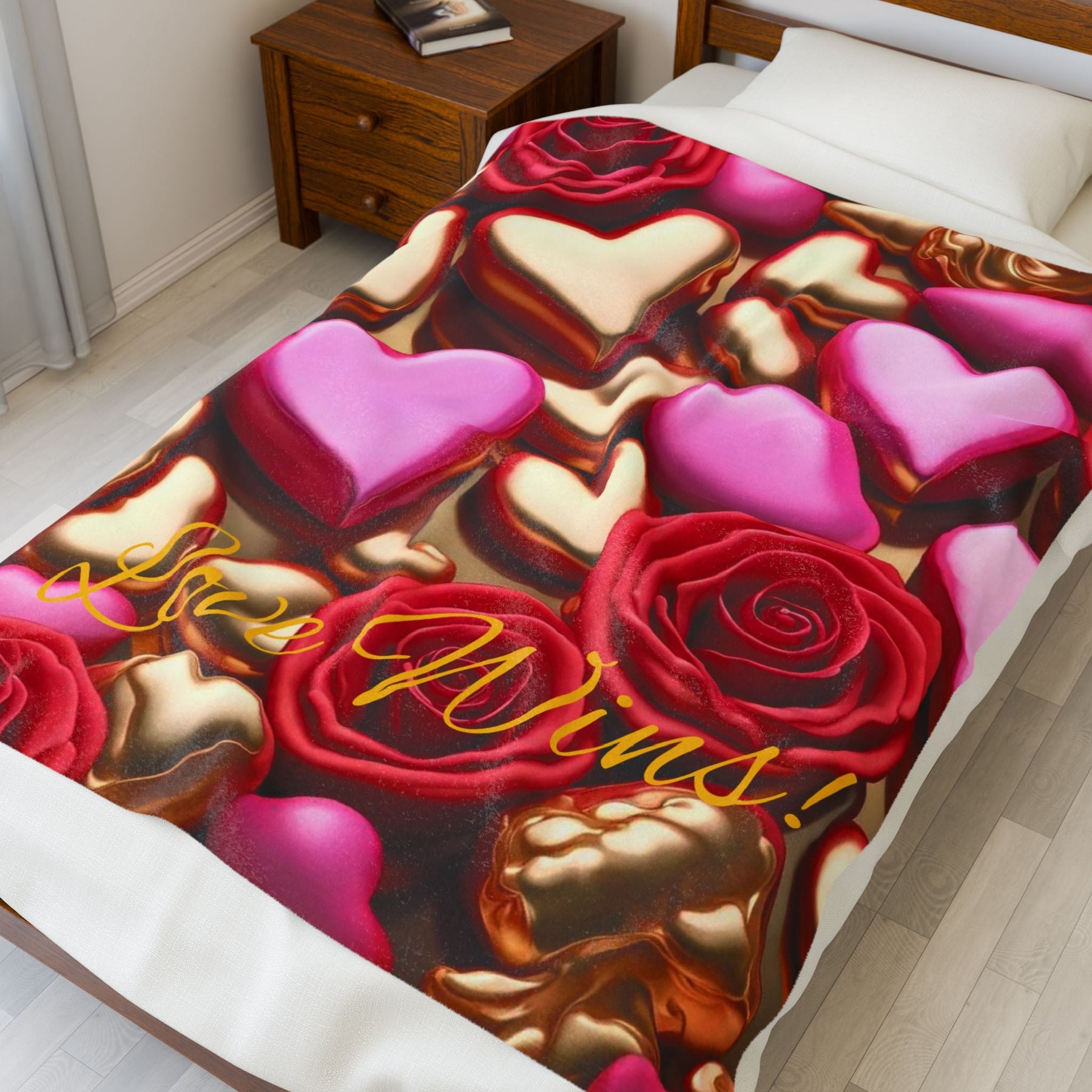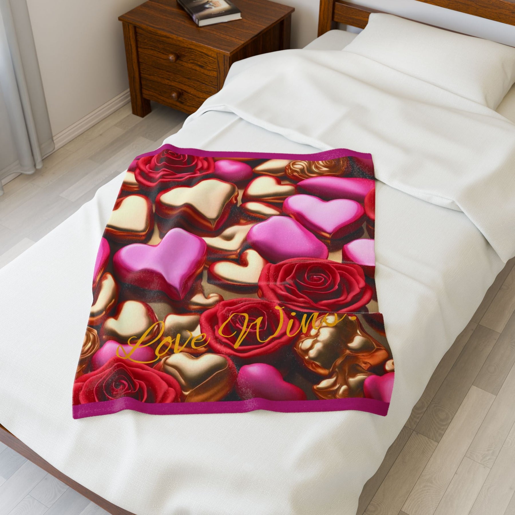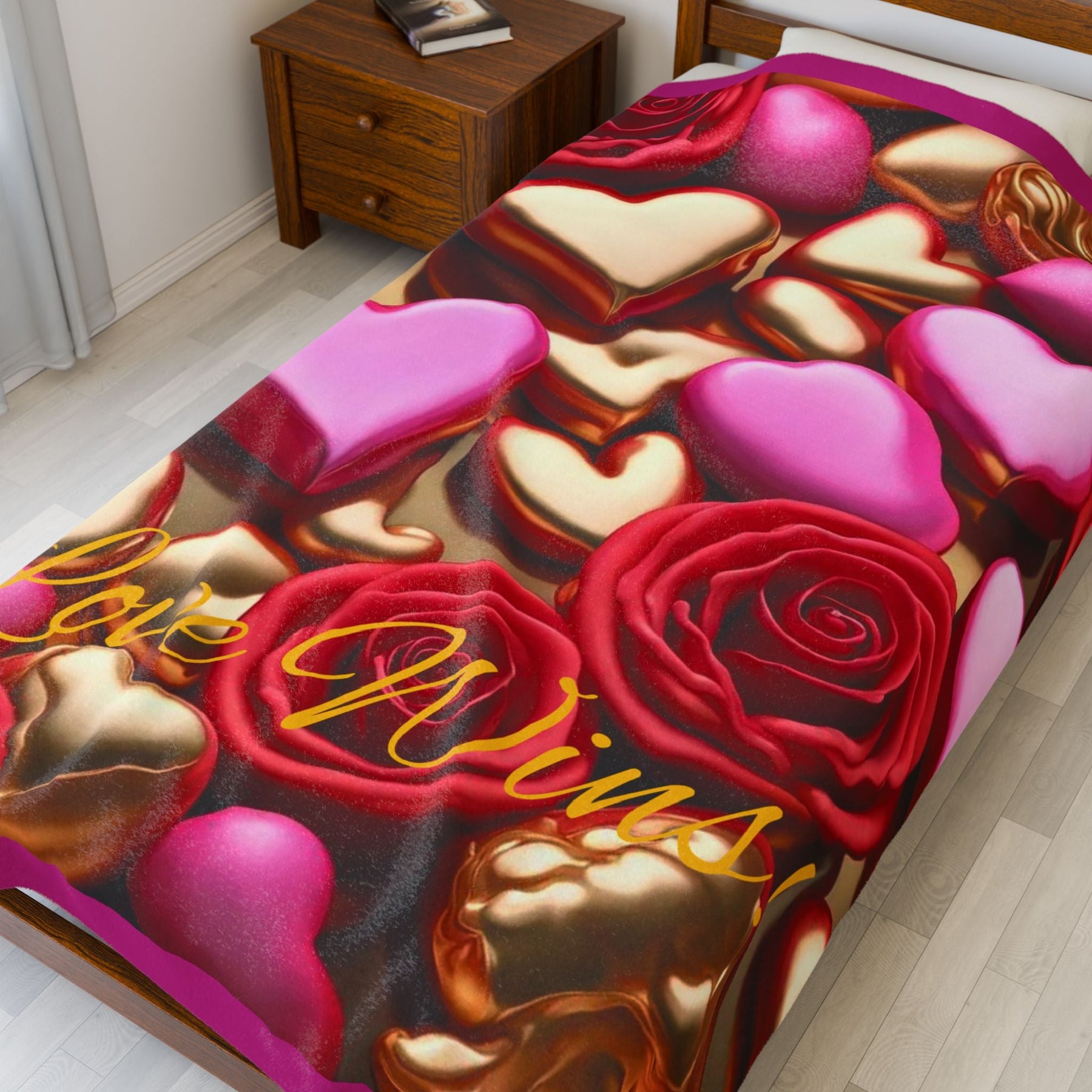 Create a cozy and warm atmosphere at home with this plush Love Wins! velveteen blanket. It is soft to touch and perfect for any home. Customize with a one-sided print to add your personal touch or create a gift for your friends and family. Available in three sizes: 30x40", 50x60", 60x80".