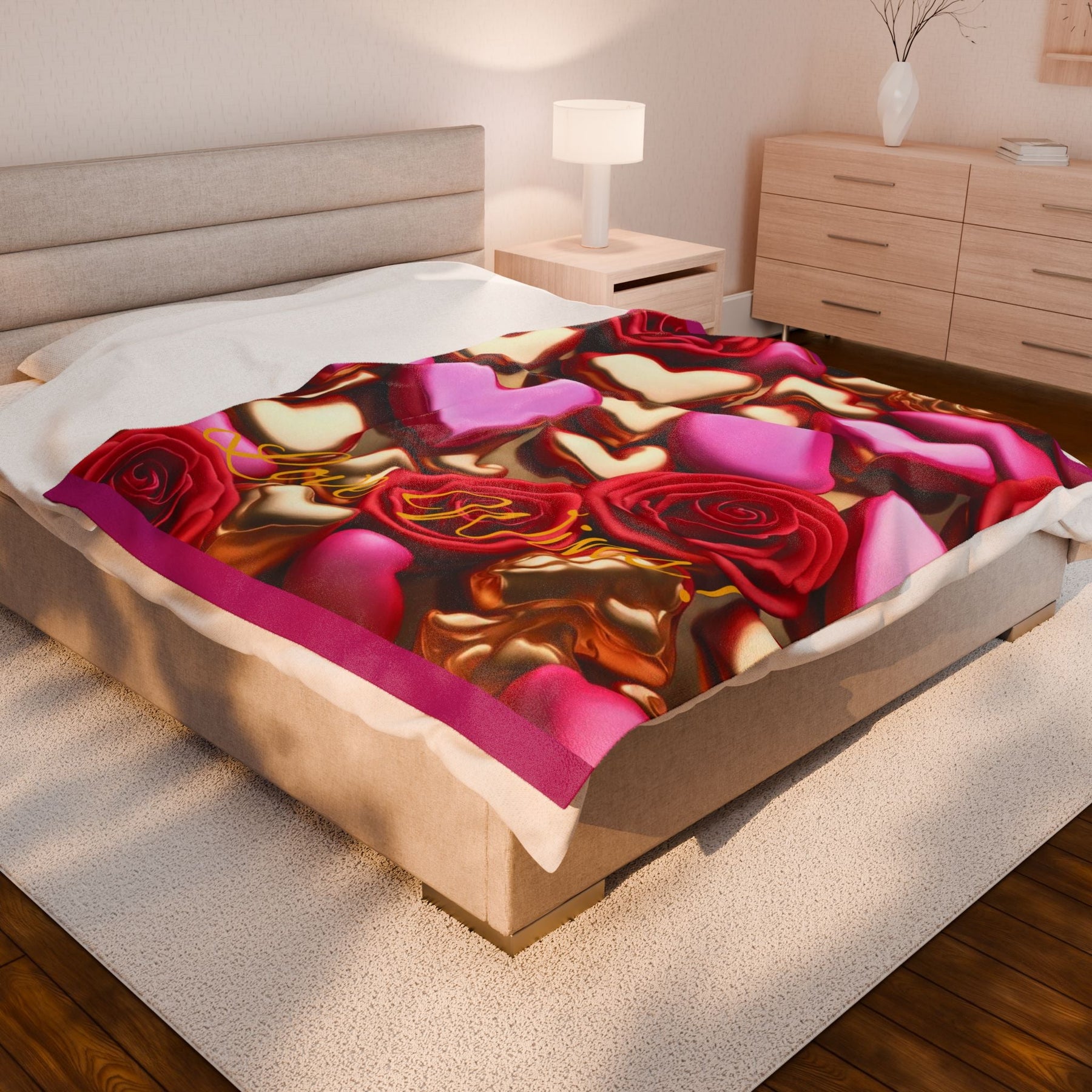 .: Your print goes on one side of the blanket in high detail and vibrant color.